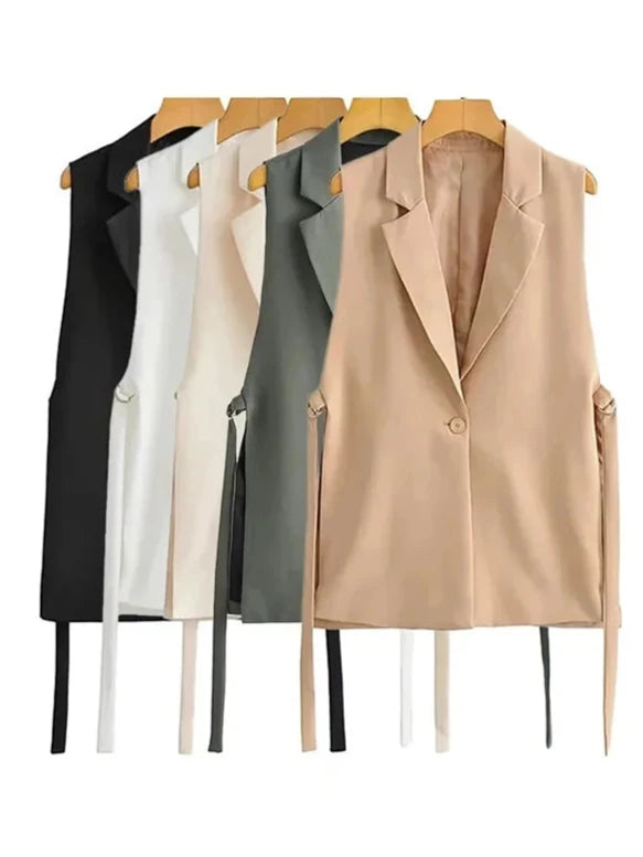 Un chaleco cute para elevar un outfit para una ocasión especial como una reunión empresarial o para algo arreglado-casual, junto con unos jeans holgados.