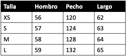 * Recomendamos revisar la tabla de medidas antes de realizar la compra. La chamarra es holgada por diseño, consideralo al elegir la talla.