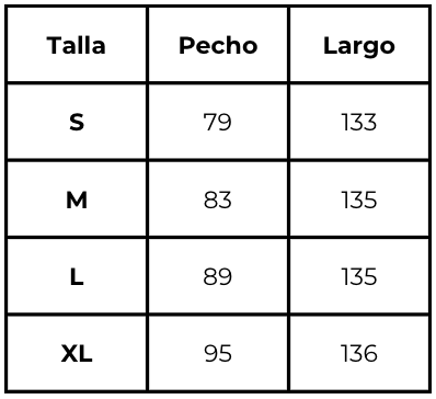 * Recomendamos revisar la tabla de medidas antes de realizar la compra. Si tienes dudas entre dos medidas, te recomendamos elegir la más grande.