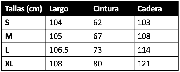 *Se recomienda revisar la tabla de medidas antes de realizar la compra. Si tienes dudas entre dos medidas, te recomendamos elegir la más grande.