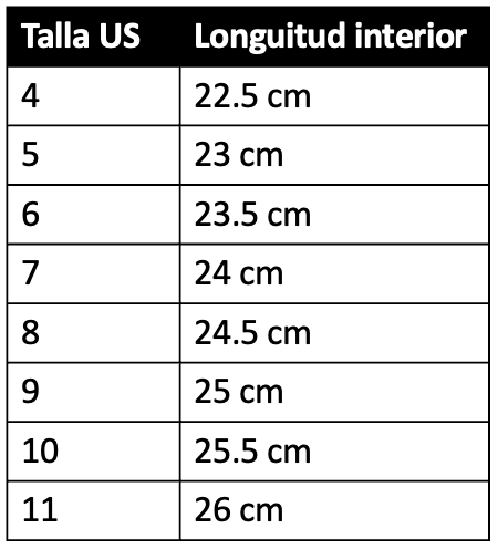 *Las tallas se muestran en medidas americanas US. Si tienes dudas revisa la tabla de medidas que esta en centímetros.