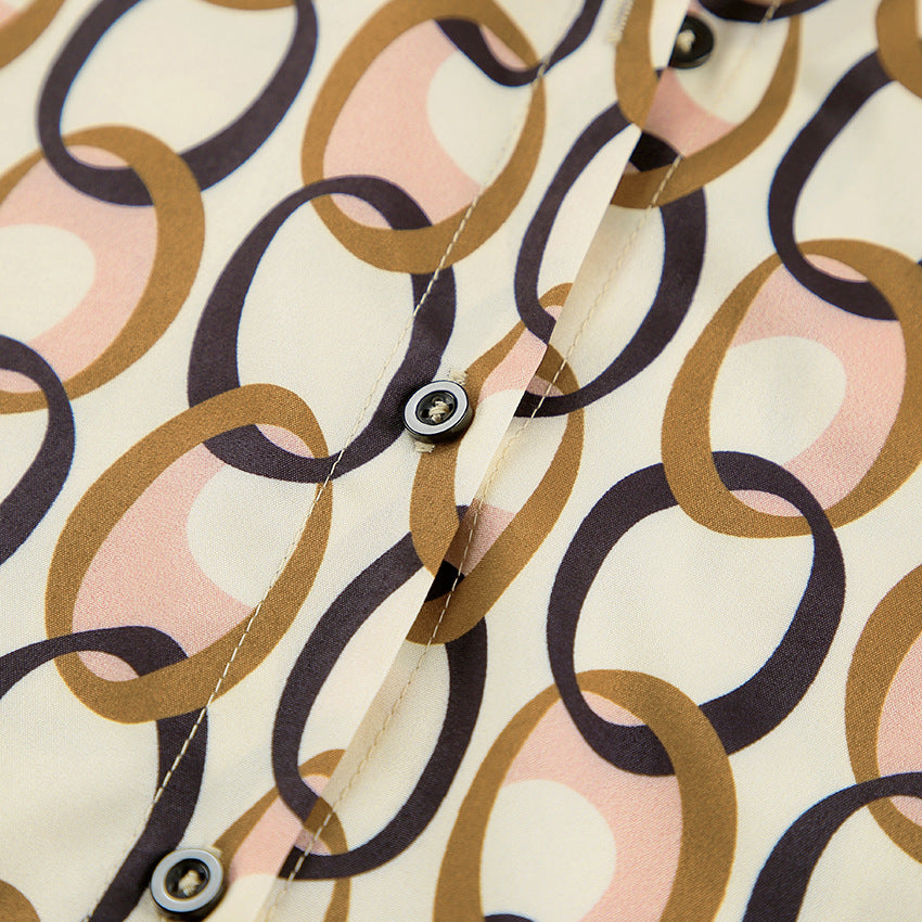 Color: crema con print multicolor donde resaltan los colores rosa, marrón y negro.