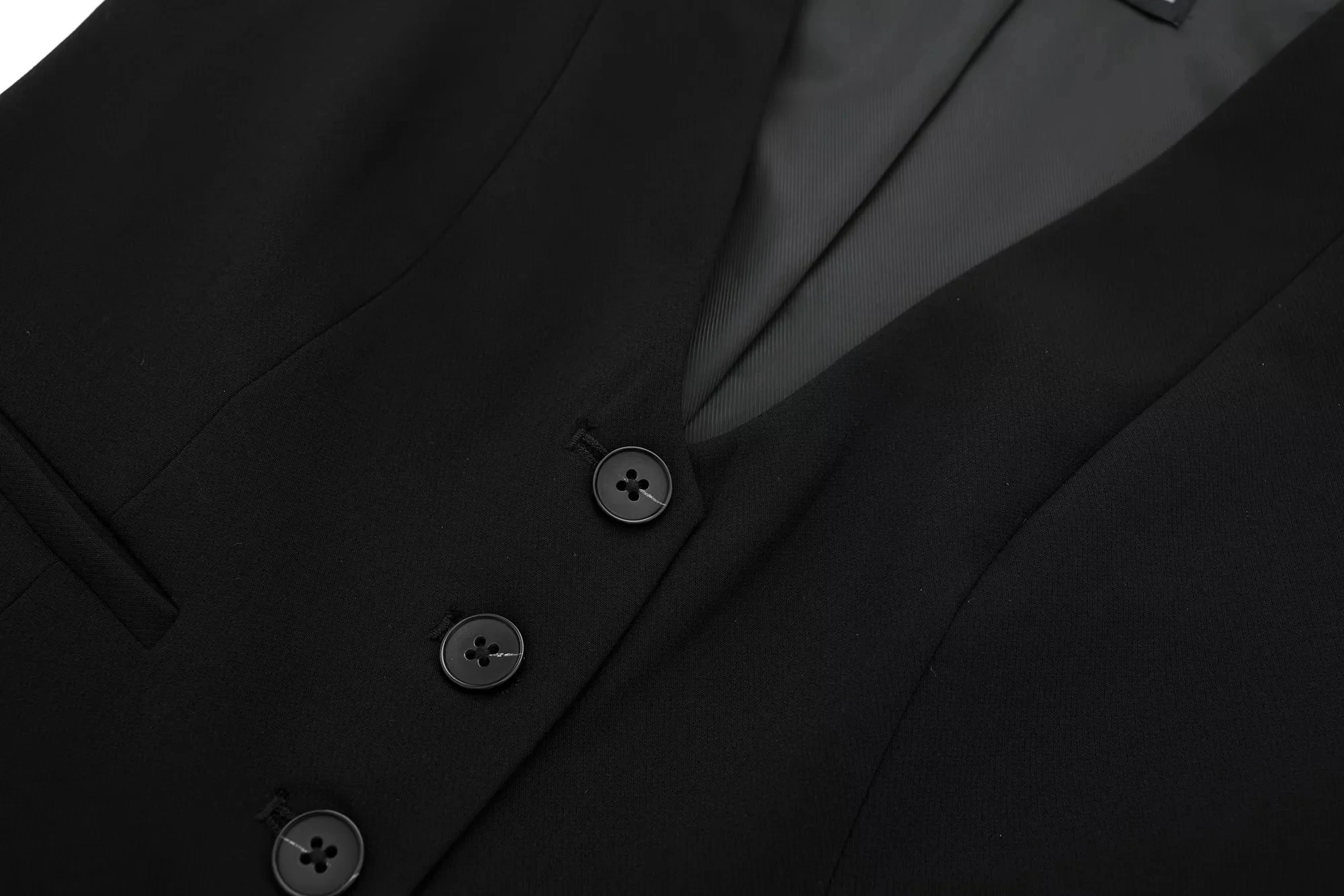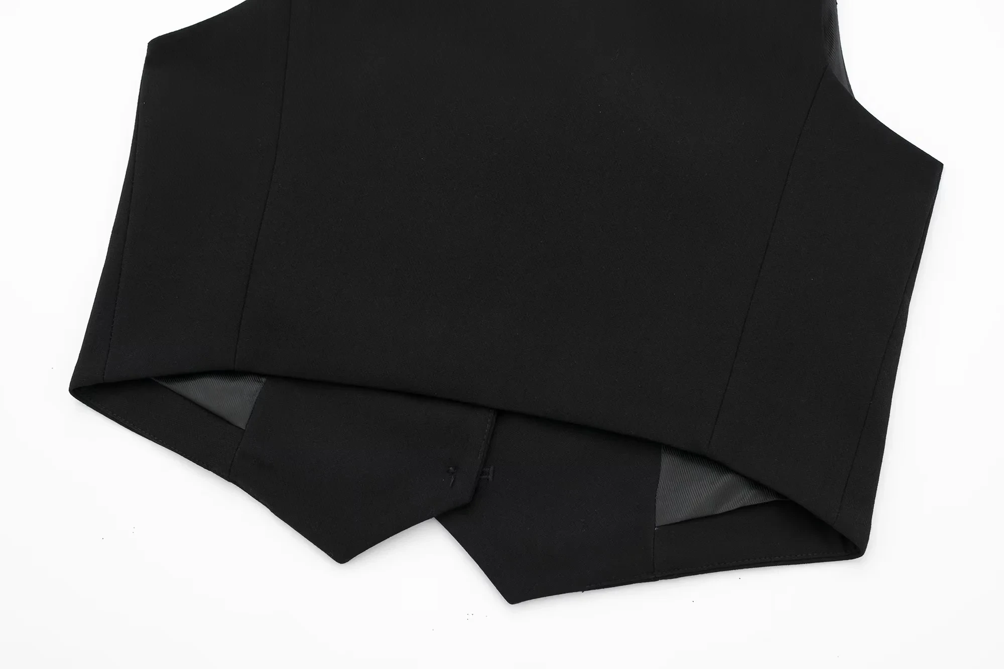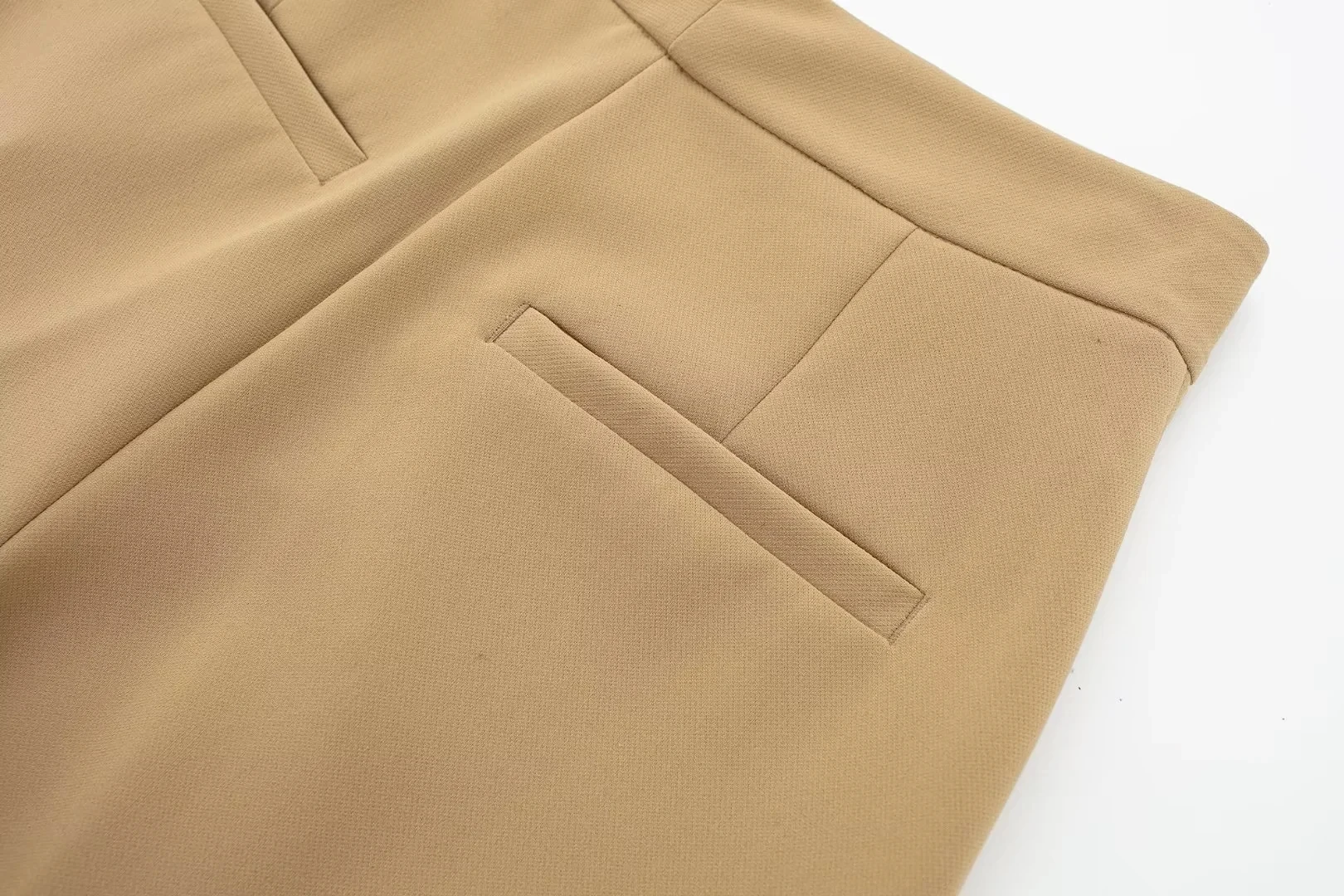 Este set es ideal para lucir linda y formal en el verano. El chaleco tiene el cuello V, sin mangas, tiene 4 botones, forro y dos bolsas cerradas. El pantalón es a la cintura, se abrocha por el centro con zipper, botón y gancho y tiene largo pescador (un poco más arriba del tobillo).