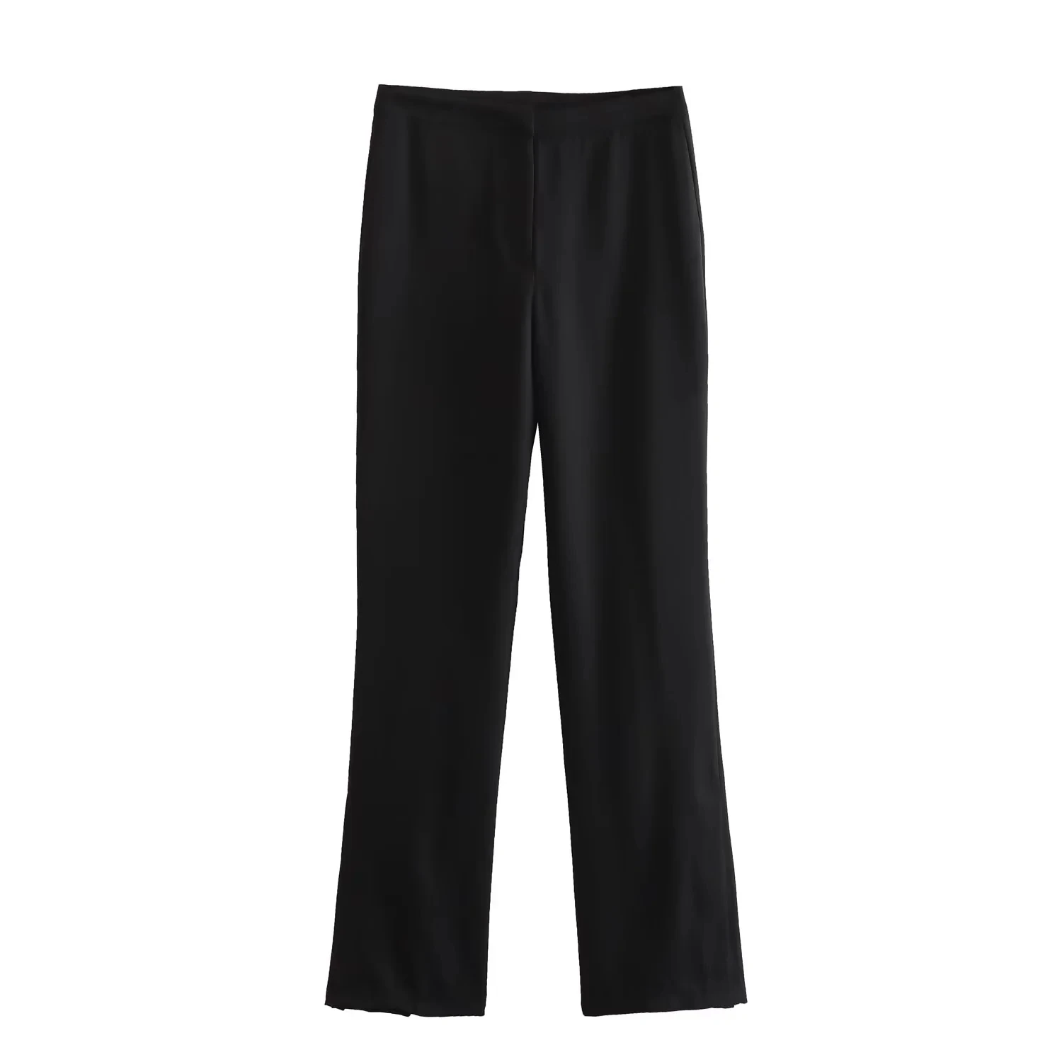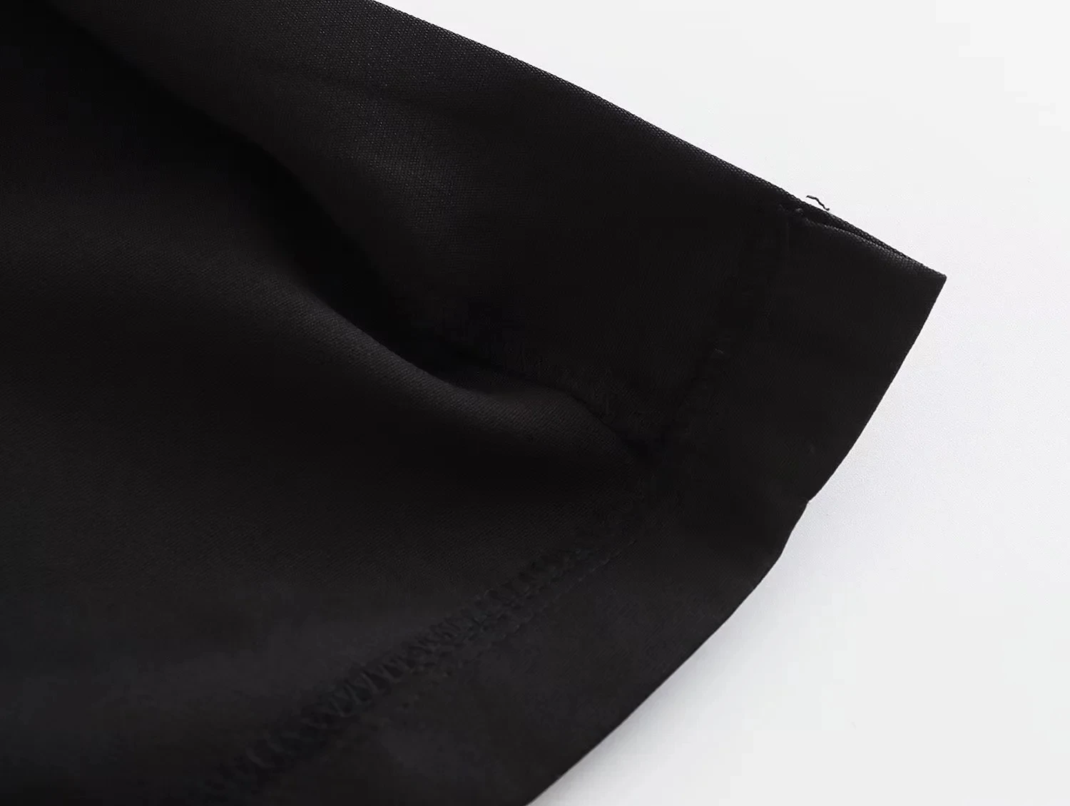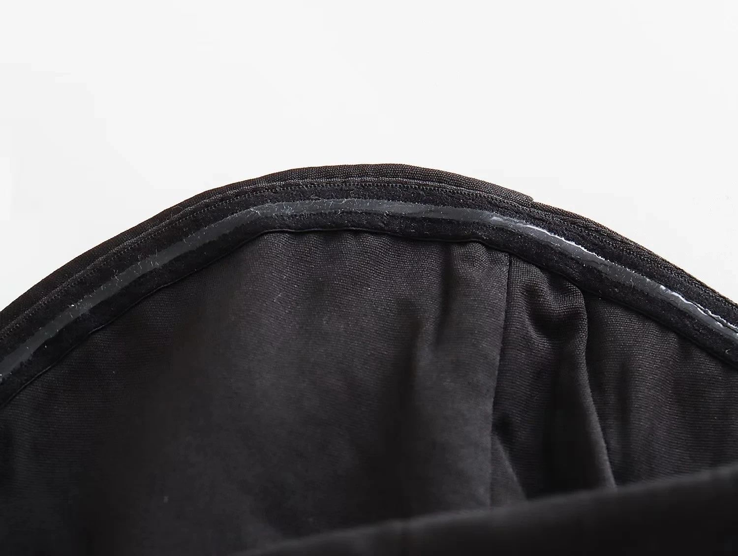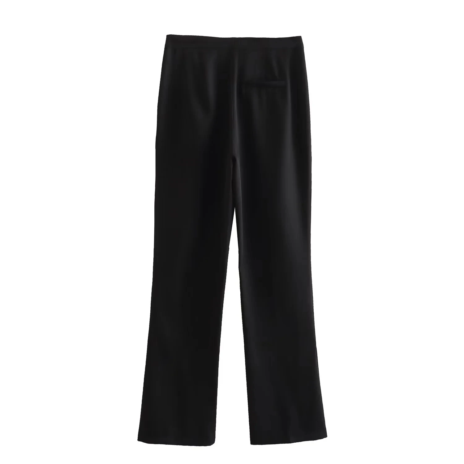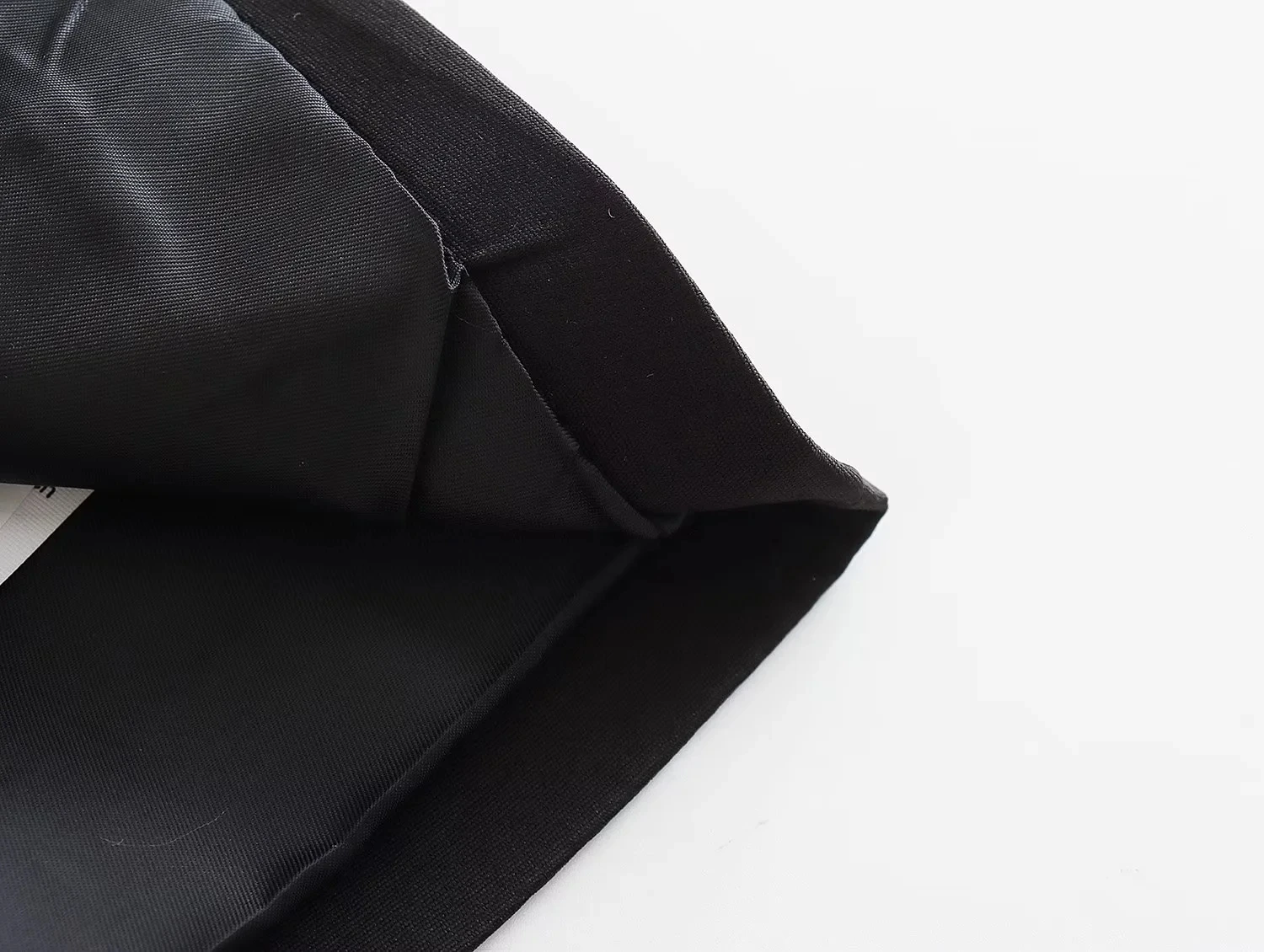 El top esta muy diferente a lo que se ve normalmente. Es strapless, tiene 4 botones, dos bolsillos cosidos, se marca la cintura. El pantalón es largo y recto, va a la cintura, tiene botón al centro.
