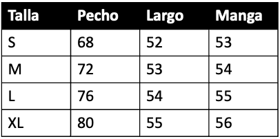 *Recomendamos revisar la tabla de medidas antes de realizar la compra. Si tienes dudas entre dos medidas, te recomendamos elegir la más grande.