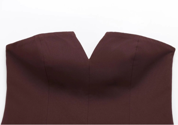 Un top versatil, coqueto, moderno. Strapless, ajustado de la cintura, con un pequeño escote que no enseña nada. Se abrocha de un zipper en un lado.