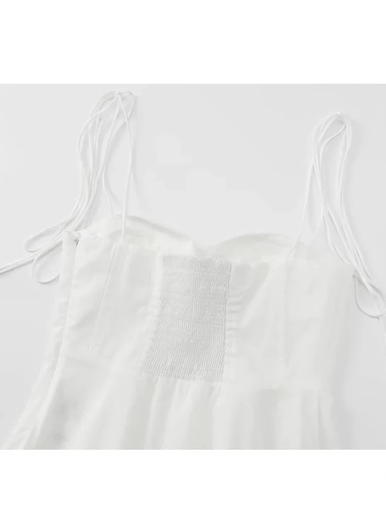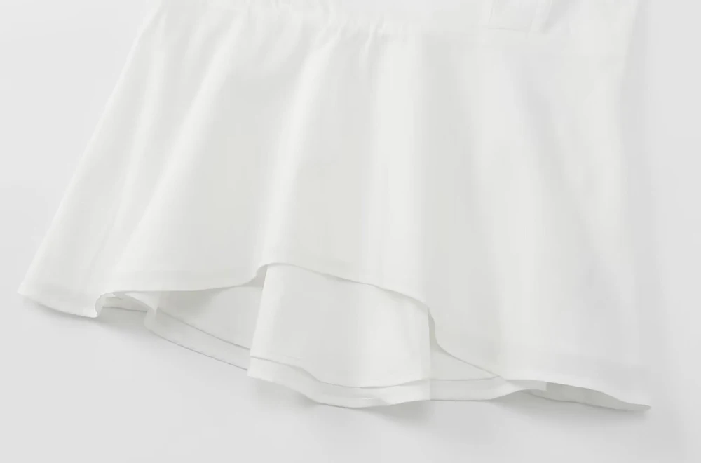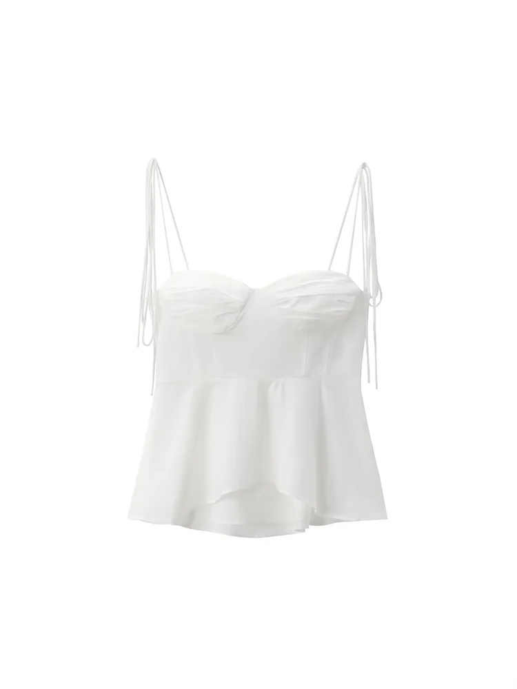 Es una blusa con tirantes delgados, pegado del pecho y se empieza a hacer holgado hasta el final del top.