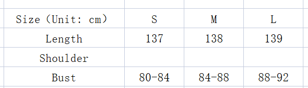 Tabla de medidas (cm):