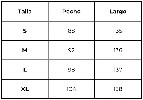 * Recomendamos revisar la tabla de medidas antes de realizar la compra. Si tienes dudas entre dos medidas, te recomendamos elegir la más grande.