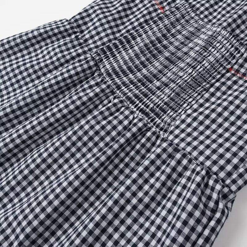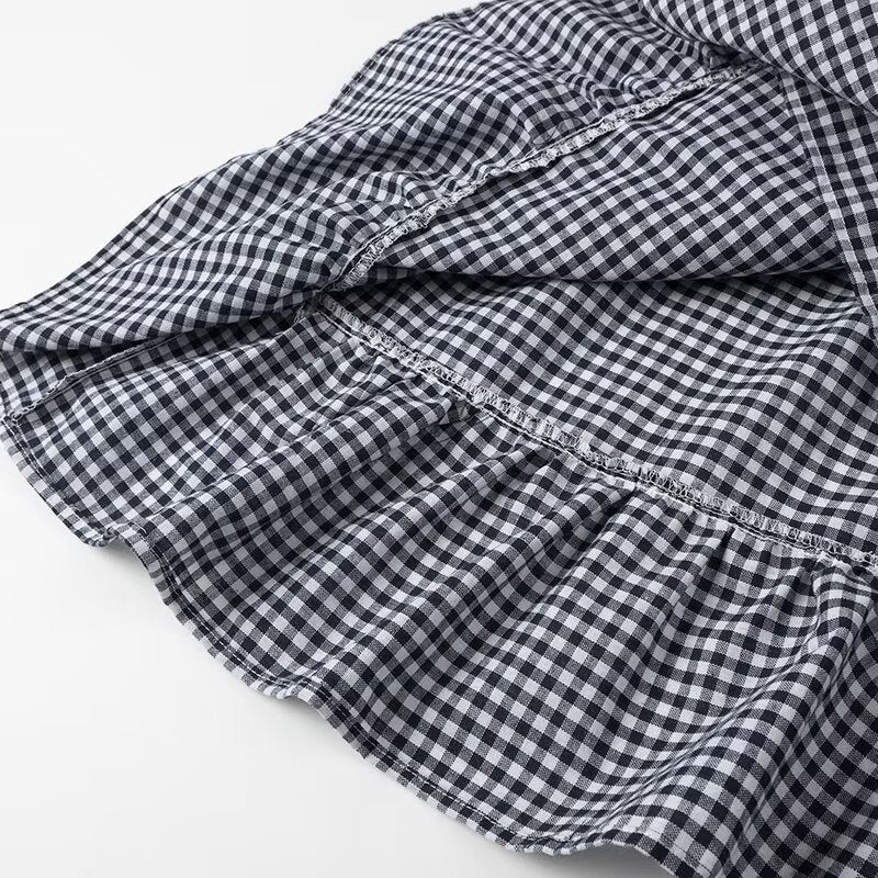 Un vestido que da vibras de marinero, un vestido midi, holgado, blanco con líneas horizontales y verticales azul oscuro y unas figuras bordeadas de mariscos rojos. El vestido tiene tirantes gruesos, escote en forma rectangular. El pecho en la parte de atrás tiene stretch para que ajuste. La falda cae de manera holgada y se va dividiendo en 3 para darle un toque diferencial.