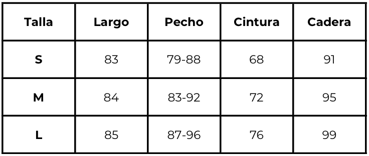 * Recomendamos revisar la tabla de medidas antes de realizar la compra. Si tienes dudas entre dos medidas, te recomendamos elegir la más grande.