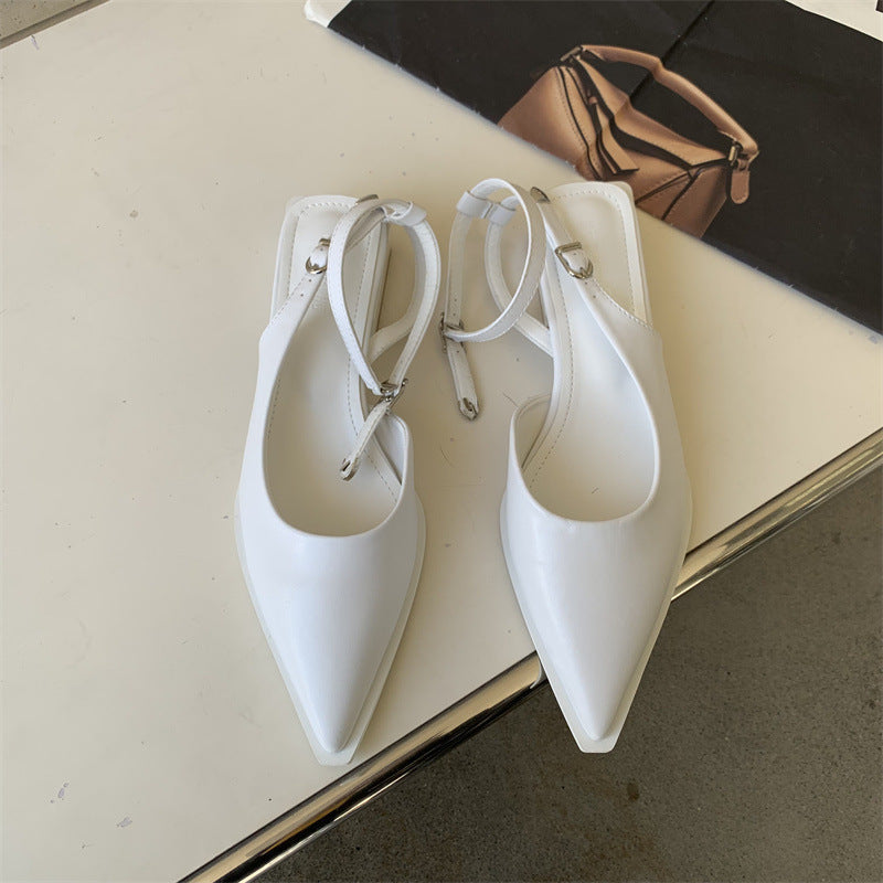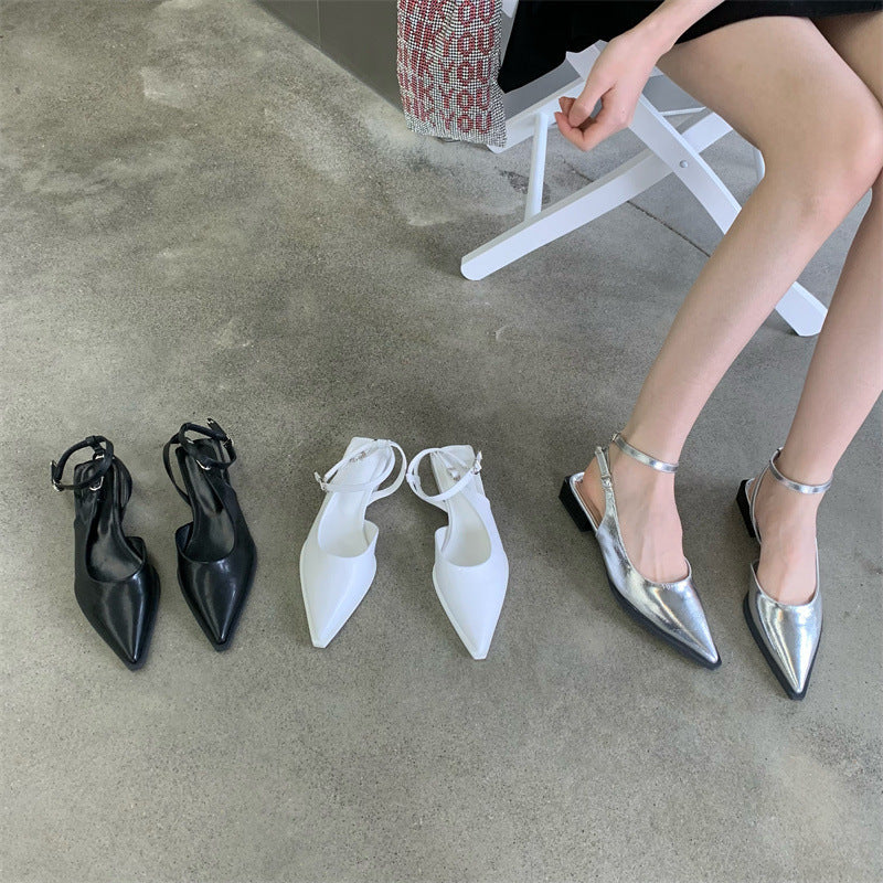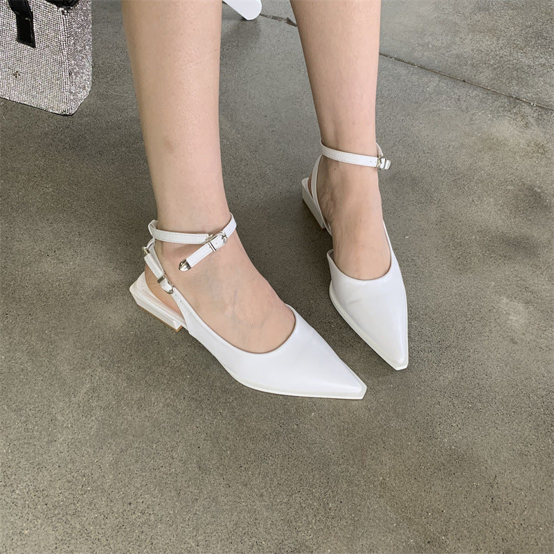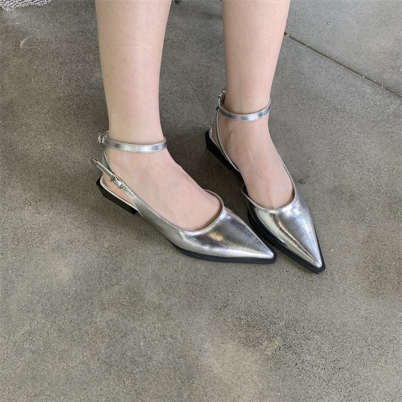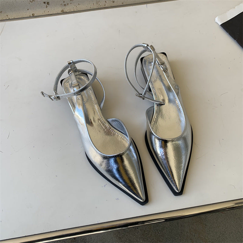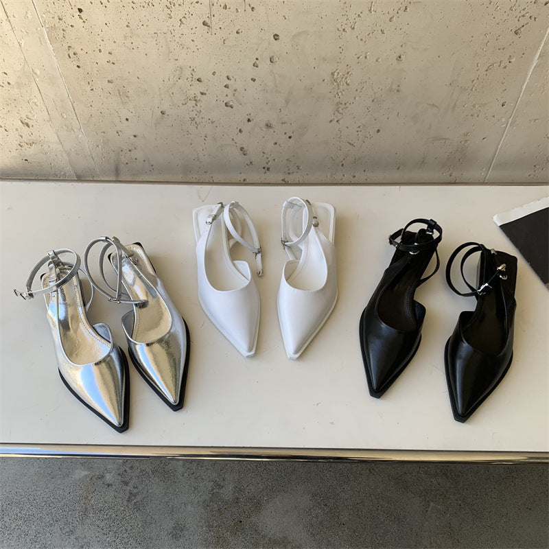 Flats lindos de piso con la punta puntiaguda y unas tiras que rodean el tobillo para abrocharse.